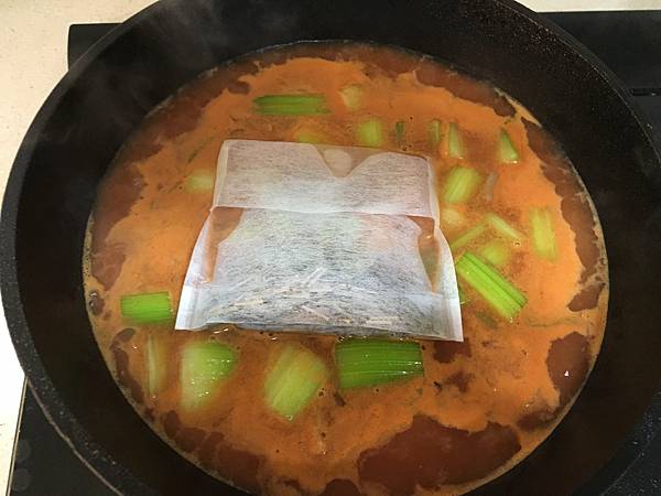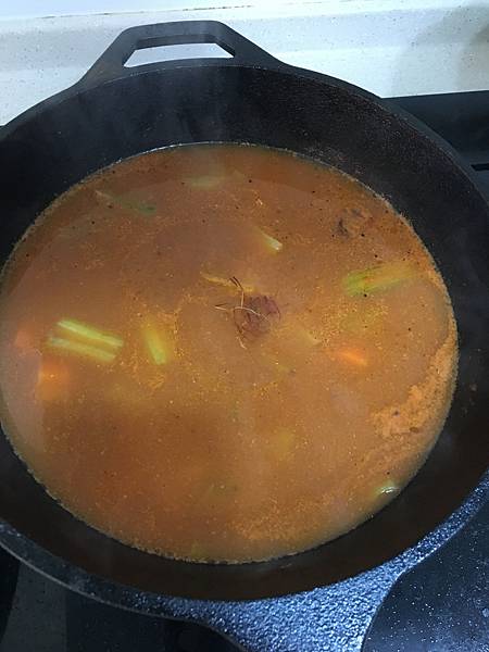 我用純蕃茄汁代替番茄,再加入過濾的魚湯用大火煮滾