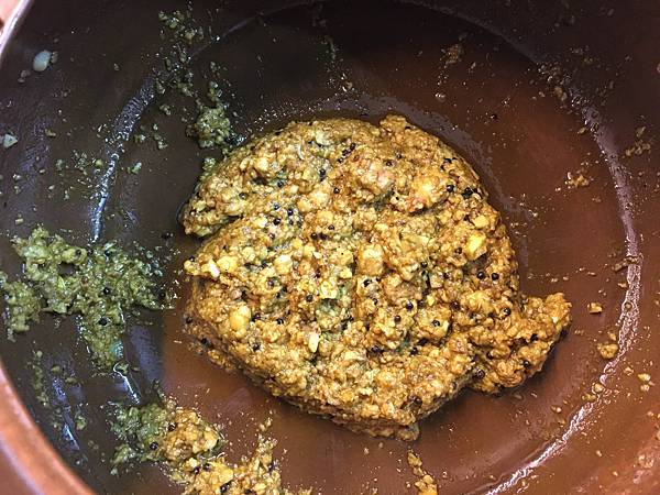 再加入芫荽+薑黃+辣椒粉。