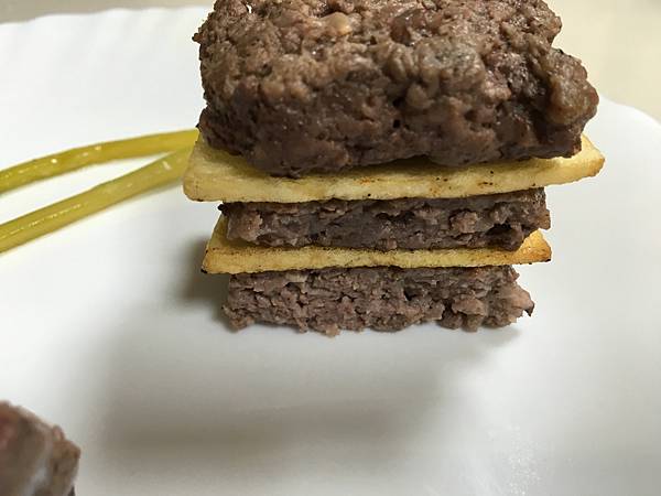 牛肉餅:口感鬆軟充斥著牛肉味,微酸的醬汁可以去除油膩