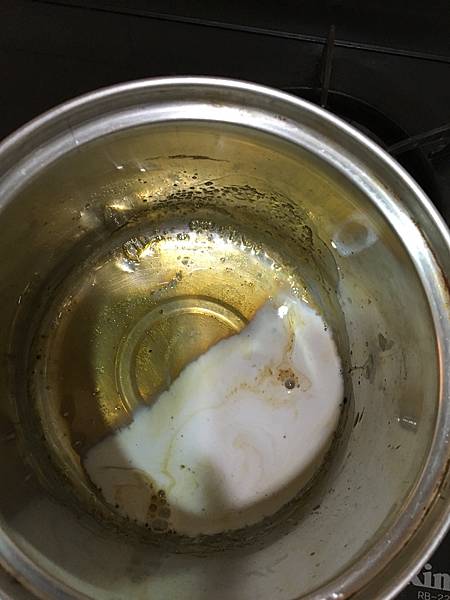 加入鮮奶油,再加入倒出的蛋液、鮮奶攪拌均勻