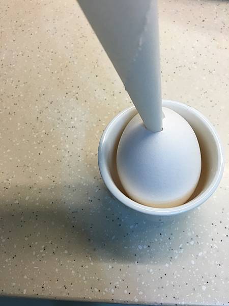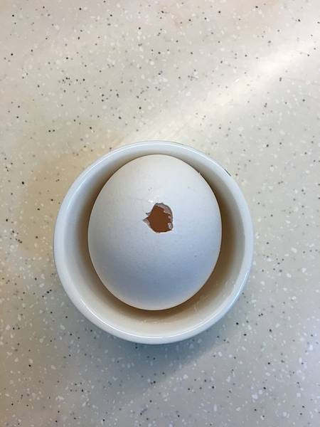 雞蛋挖洞,用牙籤攪拌掏出蛋液