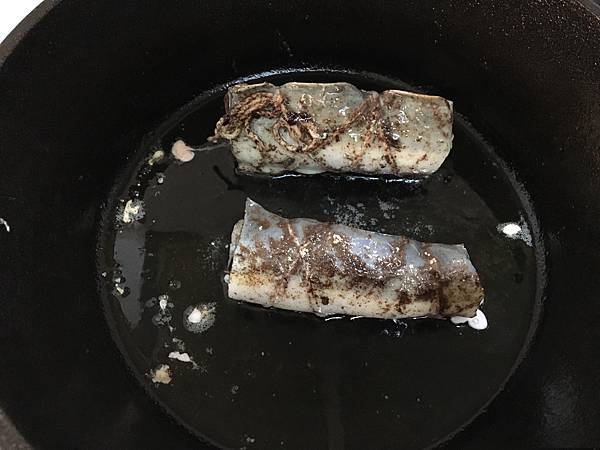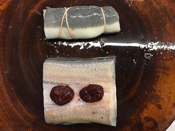 跑了幾家肉攤都買不到豬網油只好用棉繩代替,豬網油是為了讓鰻魚合起來,並用油脂增加濃郁的滋味,不過鰻魚本身的油脂已夠濃郁了