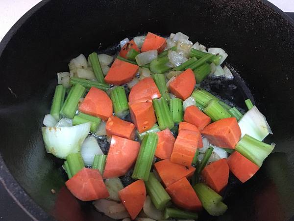 開大火,鍋中倒橄欖油放入洋蔥,炒至洋蔥變軟