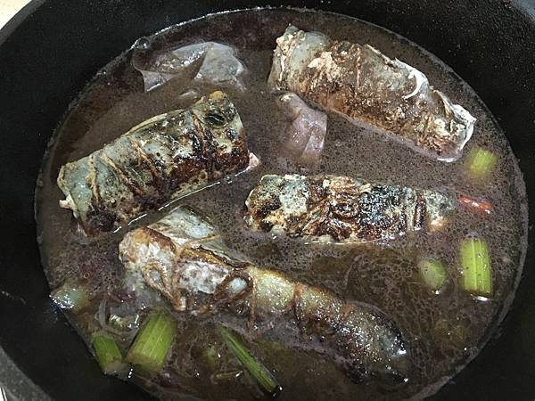 大火煮滾,將湯面上的浮渣濾乾淨,放入鰻魚轉中小火煮 20至 25分鐘