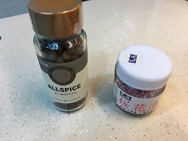 多香果和鹽漬櫻花(台灣就是買不到多香果),食戟的小惠和葉山都有用過多香果