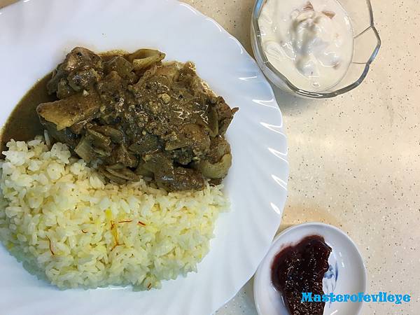由於辣味以芥末醬為主,辣椒粉為輔,辣度一吃進嘴裡很快就消退了,這是這道咖哩的最大優勢