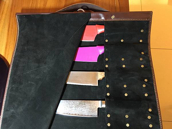 (訂做這個刀袋後,暫時無法入手其他的YAXELL系列,只好先用其他的刀具充充場面)