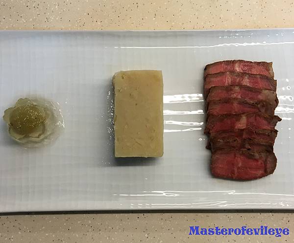 這道馬鈴薯燉肉可以說包含了前菜(薯泥)主菜(牛肉)甜點(果凍)