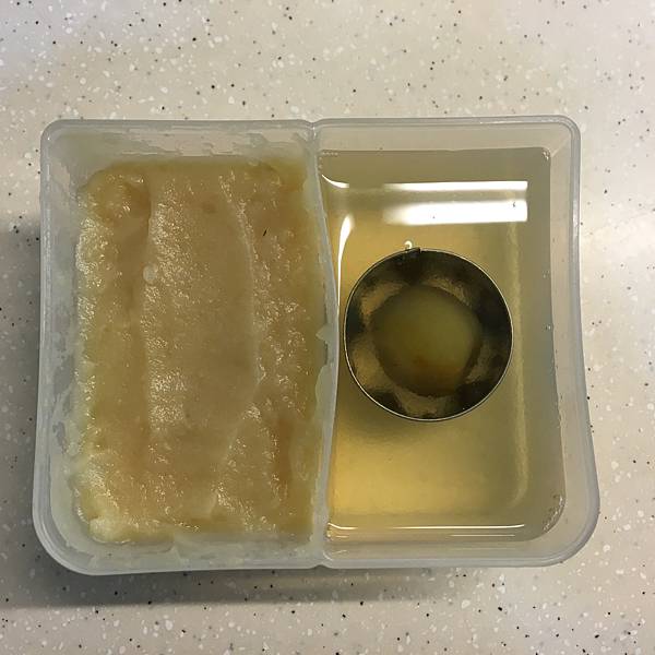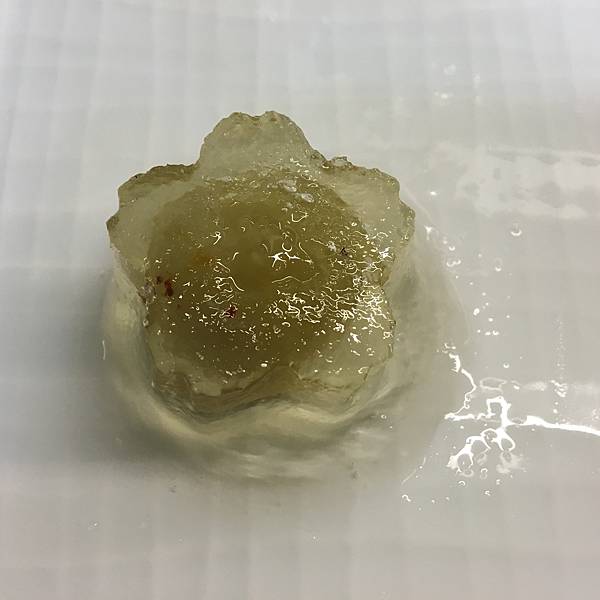 青梅一顆,梅子果汁加幾滴梅酒和溶解的吉利丁粉混和(不加梅酒也可以)