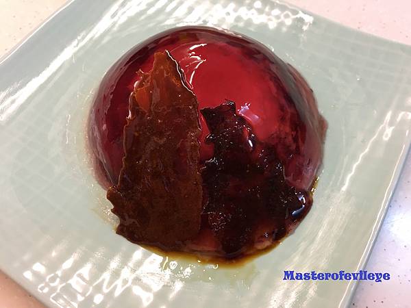 將果凍倒扣在盤子上脫模,擺上焦糖片做裝飾就可享用囉~