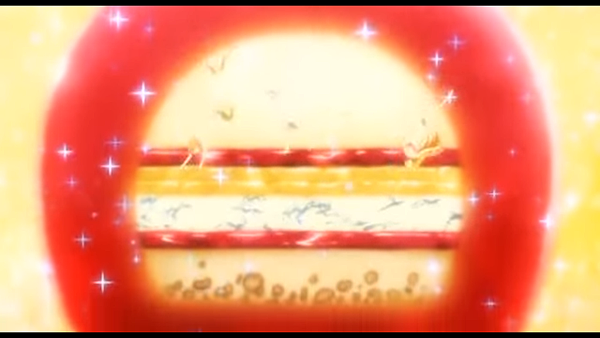 就算整體都是果凍體,內餡一般都是簡單的水果類,這種複雜內餡的果凍蛋糕真的不是動畫製作組腦洞大開的產物嗎?