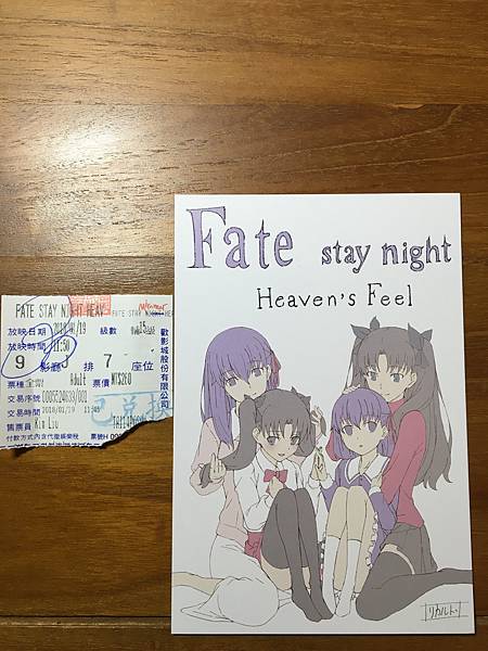 當初沒搶到Heaven's Feel預購票,迫不及待趕首映場去看,沒想到購票送一張明信片
