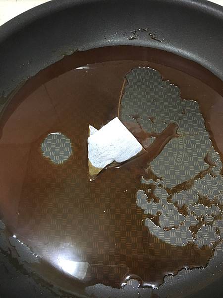 葡萄醋先煮滾揮發適量水分後加入濃縮牛高湯、煙燻醬油、蜂蜜,綠茶葉(用茶包完成時取出比較方便),煮沸快收汁時加入黑醋