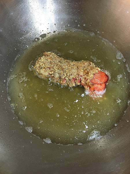 下油鍋油炸至外皮酥脆,炸龍蝦就完成了