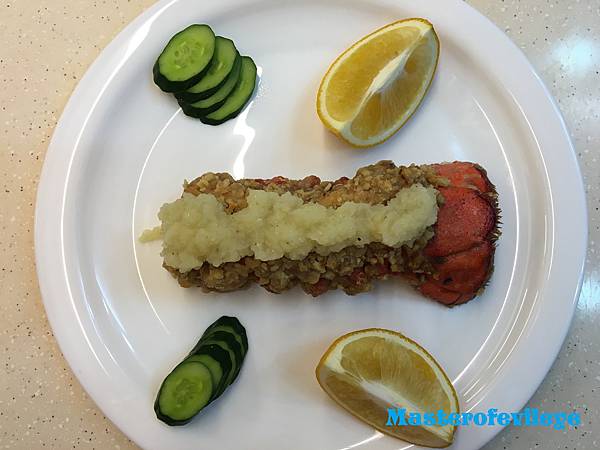 還帶著核桃的香氣,龍蝦獨有的海鮮鹹味搭配酸甜的醬汁非常好吃