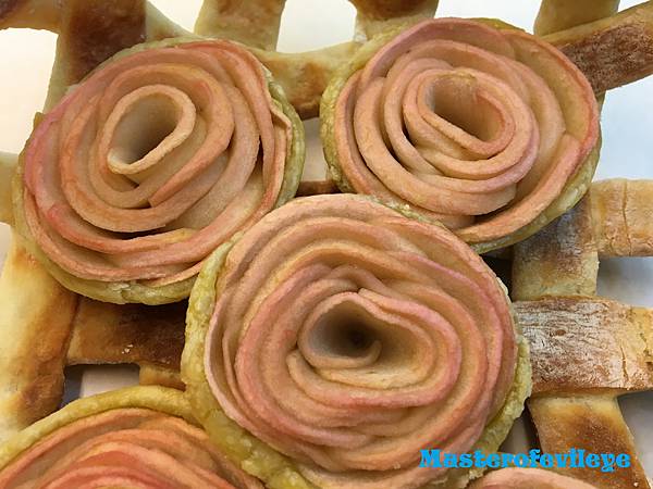 一般的蘋果塔要有紅色只能不削皮,不過蘋果皮的口感實在很粗糙啊
