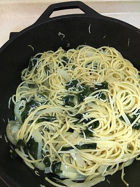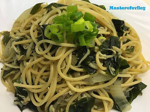 義大利麵充滿著海帶和吻仔魚的海鮮味,吃起來很清爽,不像一般餐館賣的味道略重的肉醬義大利麵,或令人易膩的奶油白醬義大利麵