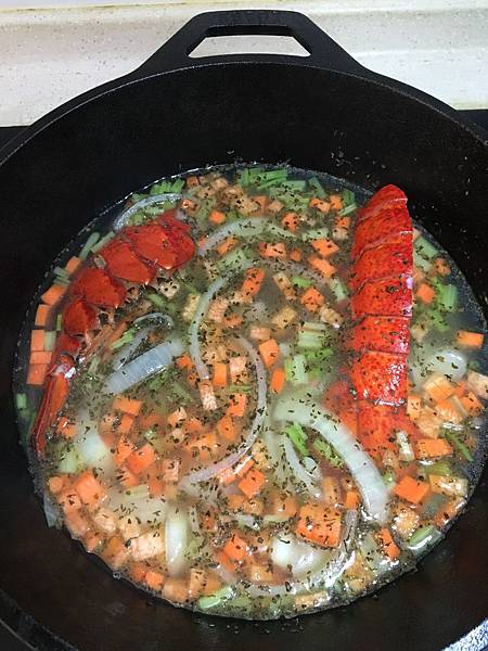 漫畫沒有講解如何料理,所以我參考地獄廚神的食譜,本來應該用小龍蝦也就是螯蝦,我直接將它升級成波士頓龍蝦,用更高級的食材來展現橫綱級的美味