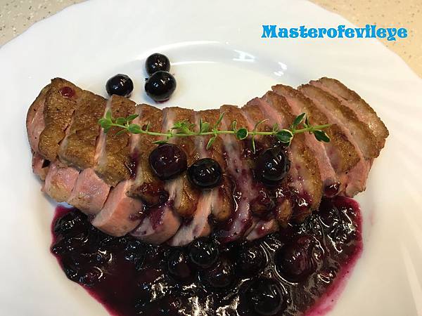 主菜是烤鴨胸佐橙香藍莓醬汁