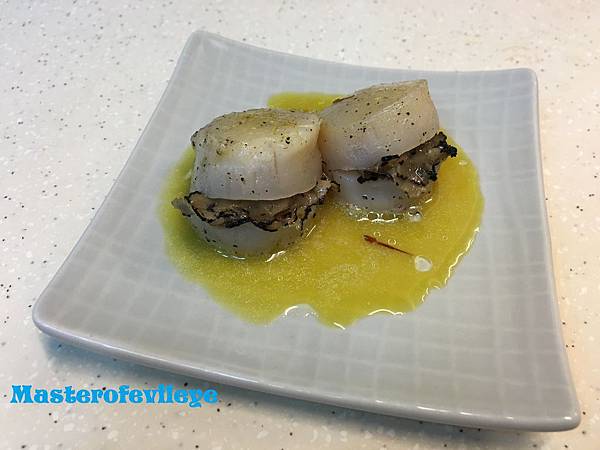 前菜是干貝夾黑松露佐番紅花醬汁
