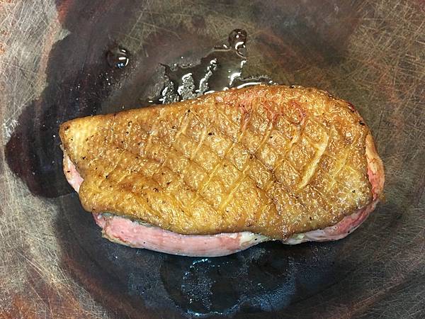 鴨皮非常酥脆,藍莓醬汁帶著橙香,這道主菜比我想像的更好吃