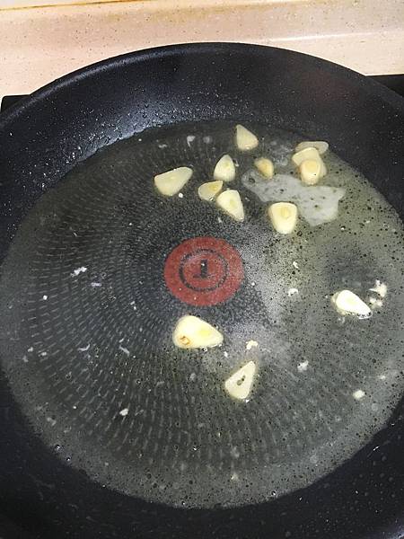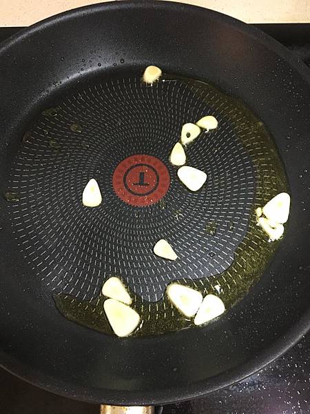旗魚排起鍋後放入蒜片、酒、鹽、奶油做成醬汁