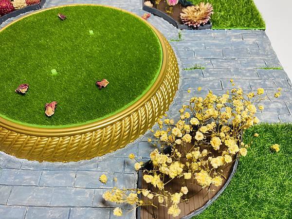 本來不想把底座黏在場景上,可是底座邊緣是不規則狀有縫隙不好看,幸好可和草皮底座分開