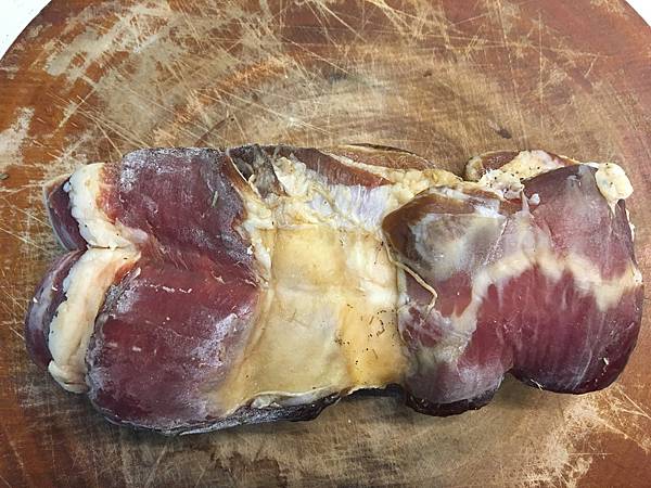 煙燻後看起來很像臘肉(臘肉和培根的製作差不多,只是東西方的調味有些差異)