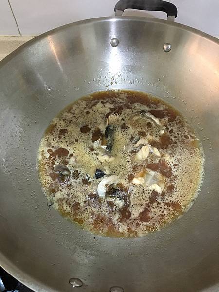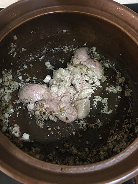 鮟鱇魚肝放入鍋中壓碎拌炒