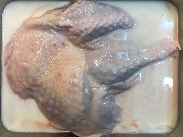 一般雞肉在煮之前放入優格搓揉一下就可以了,火雞肉一定要先泡1~2天不然會太硬