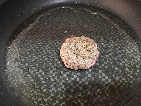 牛絞肉做成漢堡,撒上黑胡椒和鹽