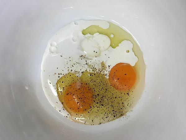 雞蛋+鹽+胡椒+鮮奶油混和
