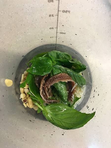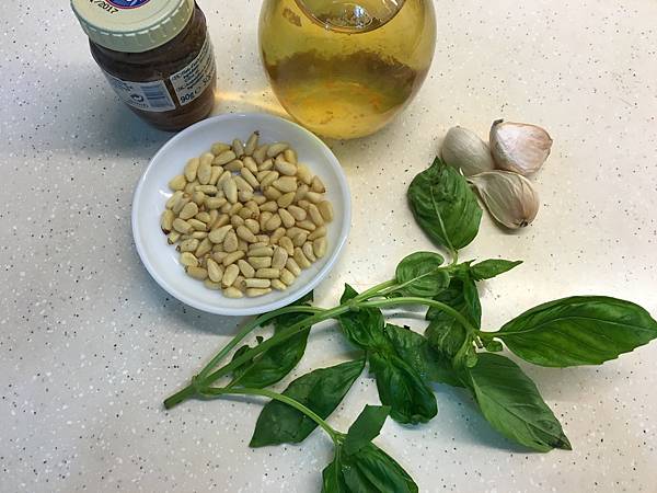市面上有販售羅勒青醬,不過有些店家賣的羅勒青醬都氧化了,當然也有無氧化的,不過要做就做全套,可行範圍內我絕不偷工減料(鯷魚和松子有點貴