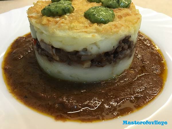 馬鈴薯泥搭配濃郁深厚的肉醬、褐醬非常好吃,羅勒鯷魚青醬更有畫龍點睛的效果,是一道值得花時間製作的美味料理