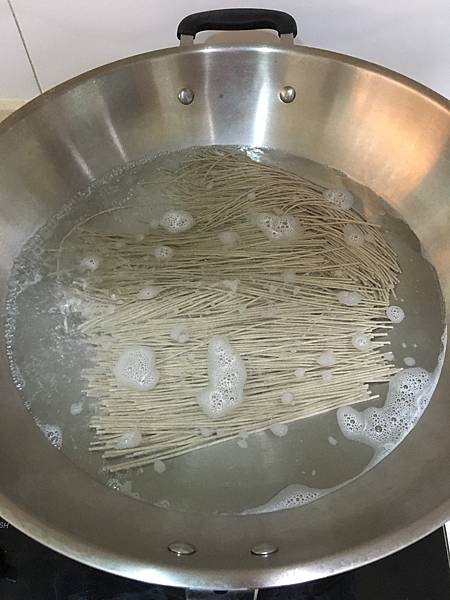 蕎麥麵先煮過,麵條變軟後立刻撈起
