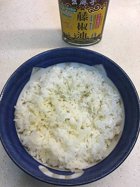 白飯混和適量的藤椒油和岩鹽,藤椒油會讓舌頭發麻因此別加太多