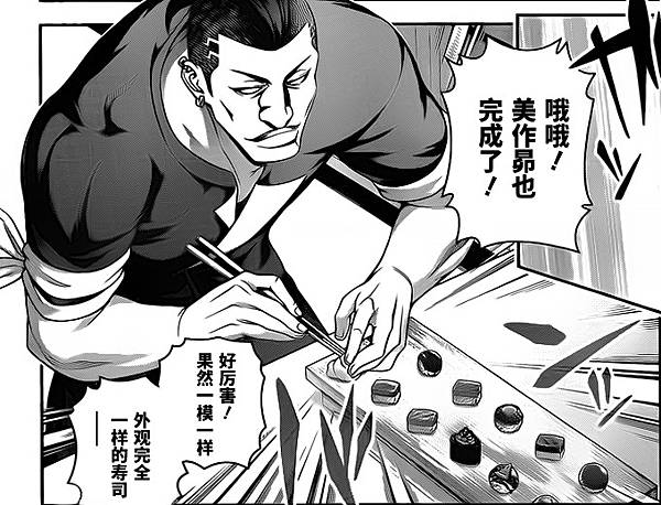 幸好齋藤是因為比賽避免裁判無法吃完而做成小球壽司,剩下的鮪魚就直接切成生魚片沾山葵吃,享受鮪魚真正的美味