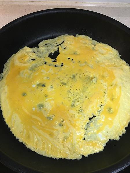 4顆蛋打散+3小匙砂糖+少許鹽,煎熟