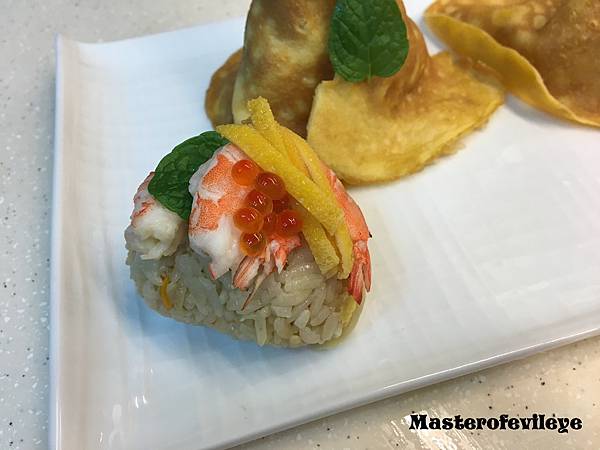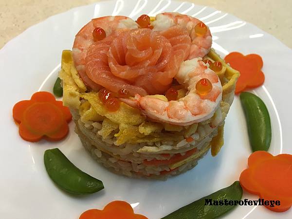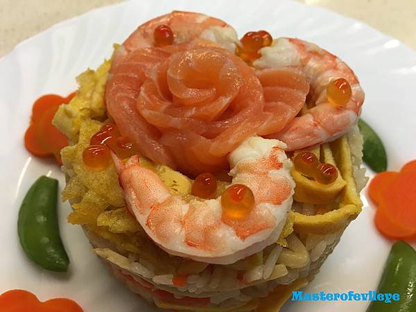 整道料理吃起來酸酸甜甜的,微酸的醋飯,甜甜的蛋絲,酸甜的蝦子