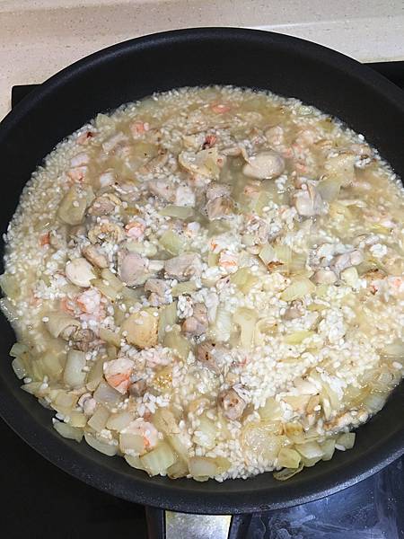 加入米和雞高湯燉煮