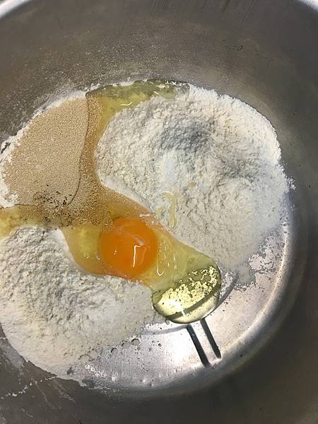 中筋麵粉、細砂糖、酵母、鹽、雞蛋、牛奶、無鹽奶油
