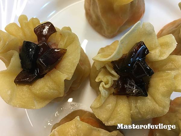燒賣薄薄的皮透出魚卵的橘黃色,一口咬下去可以嘗到魚卵顆粒的口感,由於沒有皮蛋的蛋黃,所以不會有那混濁的味道, 沾不沾醬油都很好吃