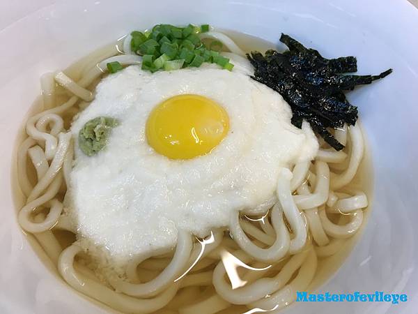 清澈的昆布高湯和簡單的配料,山藥泥烏龍麵和一般的拉麵比起來十分清淡,那個芥末就是讓烏龍麵增加一點辛辣味用的