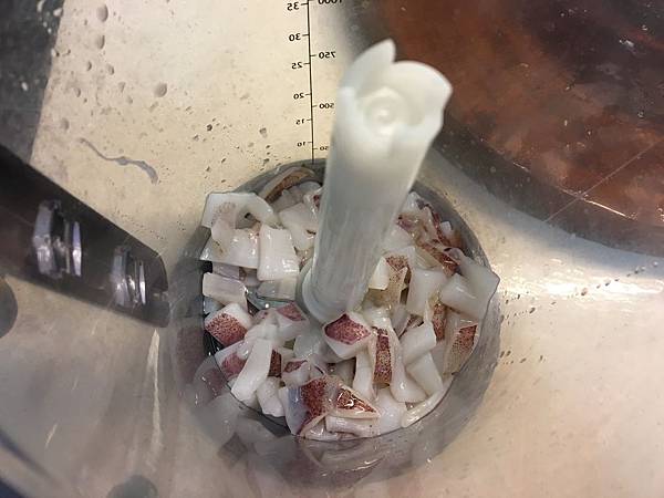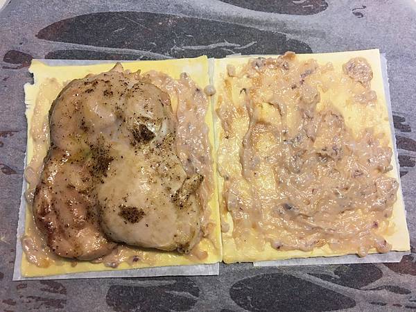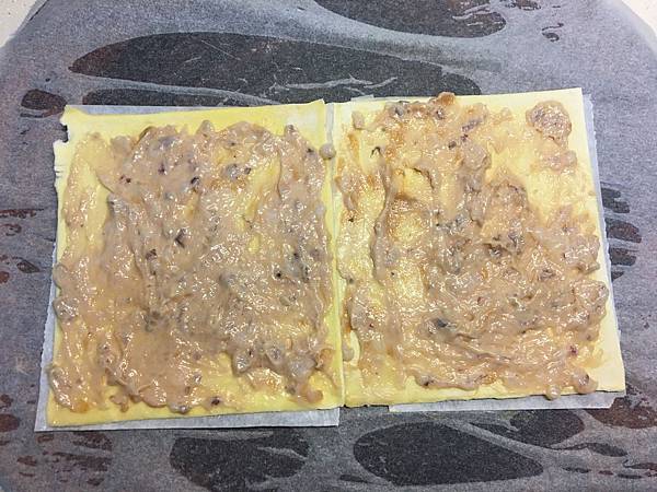 打成泥的烏賊腳混和1/2大匙花生醬抹在酥皮上