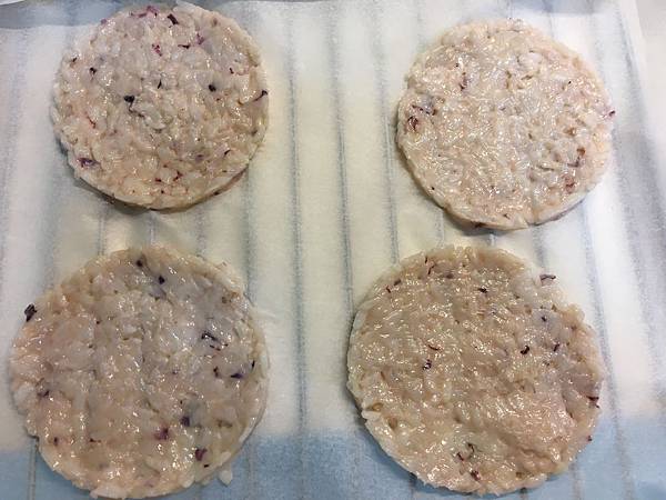 混和煮好放涼的米飯,1大匙麻油少許鹽,進烤箱以180度烤1520分鐘