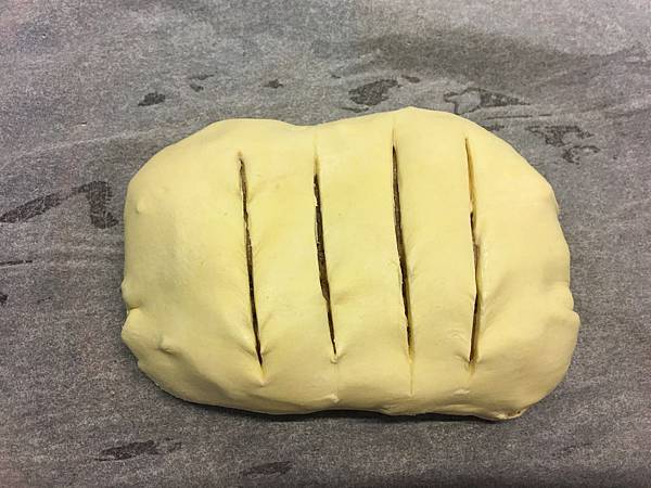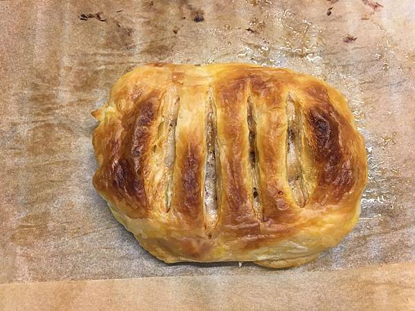 頂部畫幾道刀痕讓蒸汽可以散出,進烤箱以220度烤20分鐘