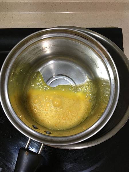 2大匙鮮奶油+2顆蛋黃隔水加熱至濃稠狀,要不時攪拌避免變成炒蛋,最後再用少許黑胡椒和鹽調味